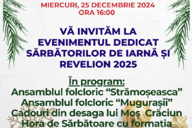 Stimati locuitori ai satului Tartaul Vă invităm. Vineri, 08 Noiembrie 2024, să sărbătorim Hramul Satului si al Bisericii „Sfântul Mare Mucenic Dimitirie” cu următorul program de activitate: 08:00-12:00 – Serviciul Divin la Biserica “Sf.Mare Mucenic Dimitrie” Tartaul 13:00 – 14:00 – Târgul Bucatelor Tradiționale, Grădinița […]