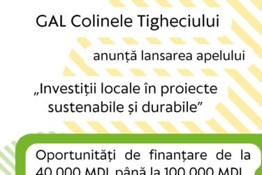 Colinele Tigheciului „Investiții locale în proiecte sustenabile și durabile” Accesează granturi de până la 100.000 de lei Asociația Grupul de Acțiune Locală (GAL) „Colinele Tigheciului” care activează în localitățile corn. Baimaclia (s. Baimaclia, s. Acui, s. Suhat), satul Capaclia, comuna Chioselia (s. Chioselia și […]